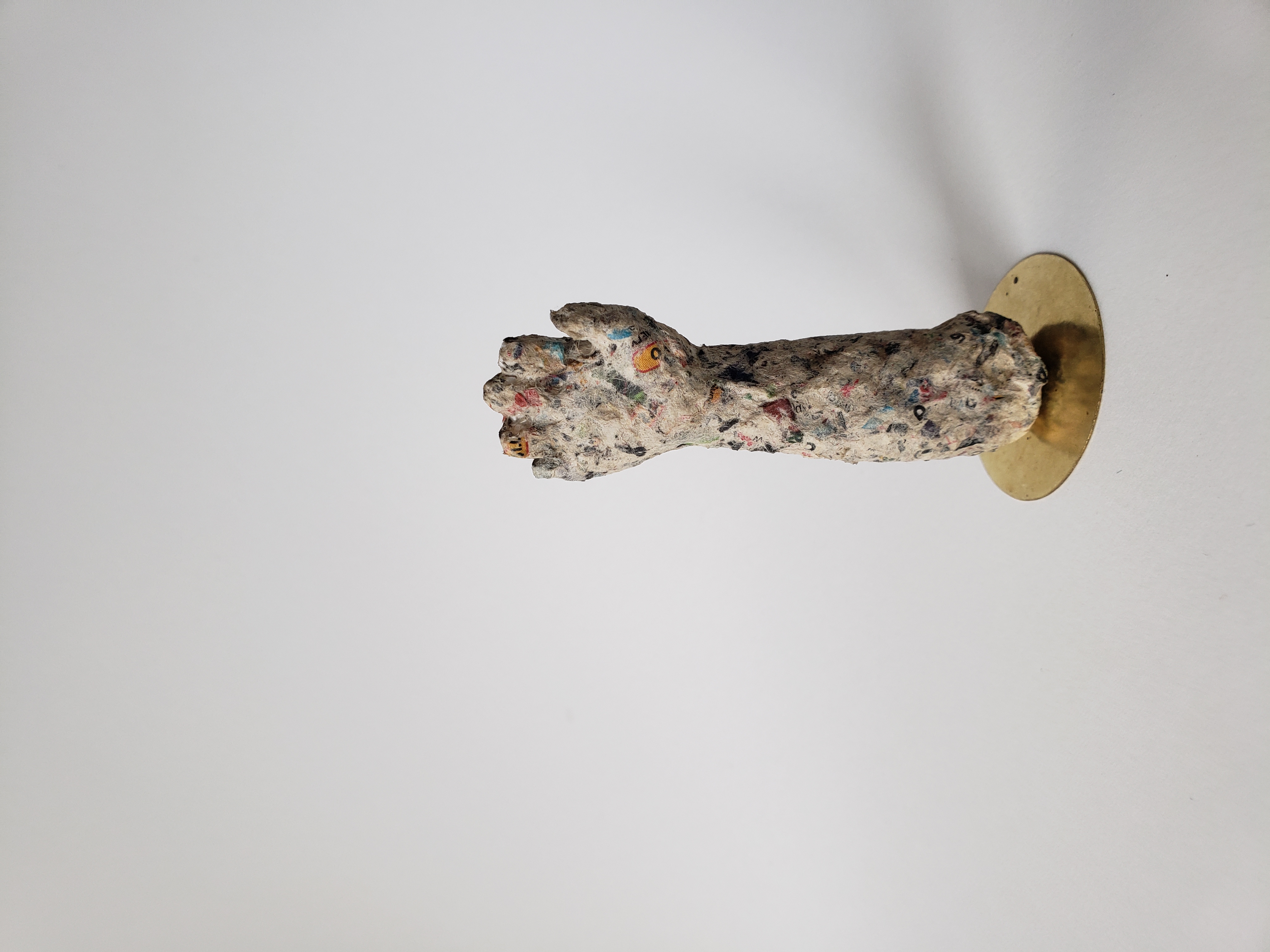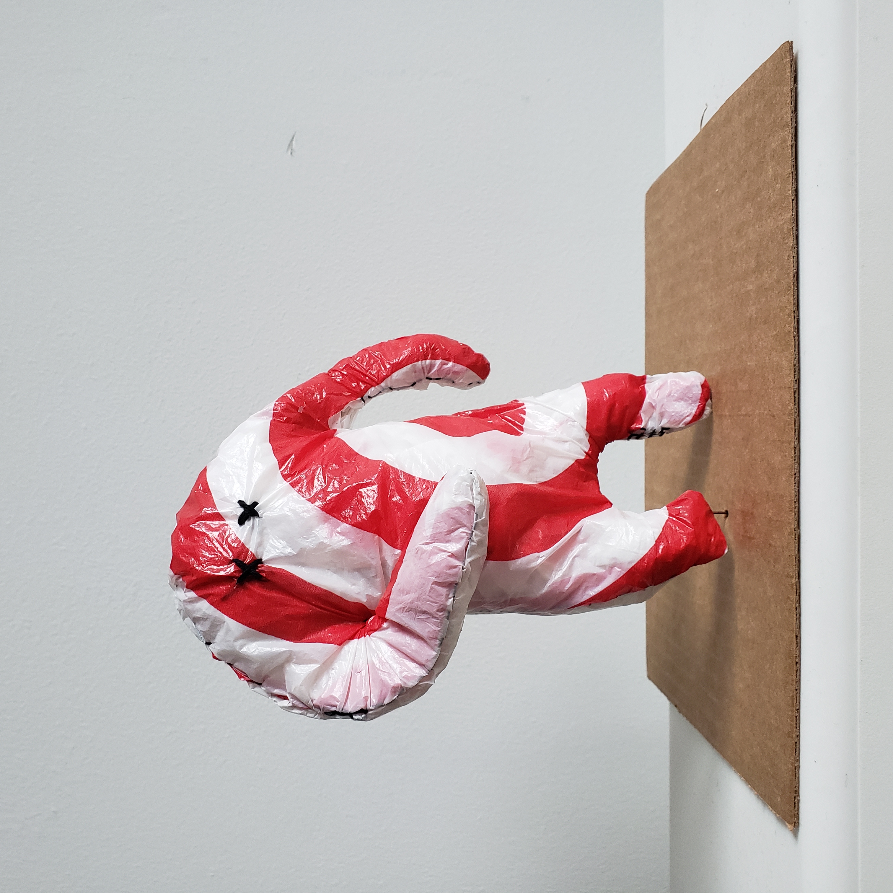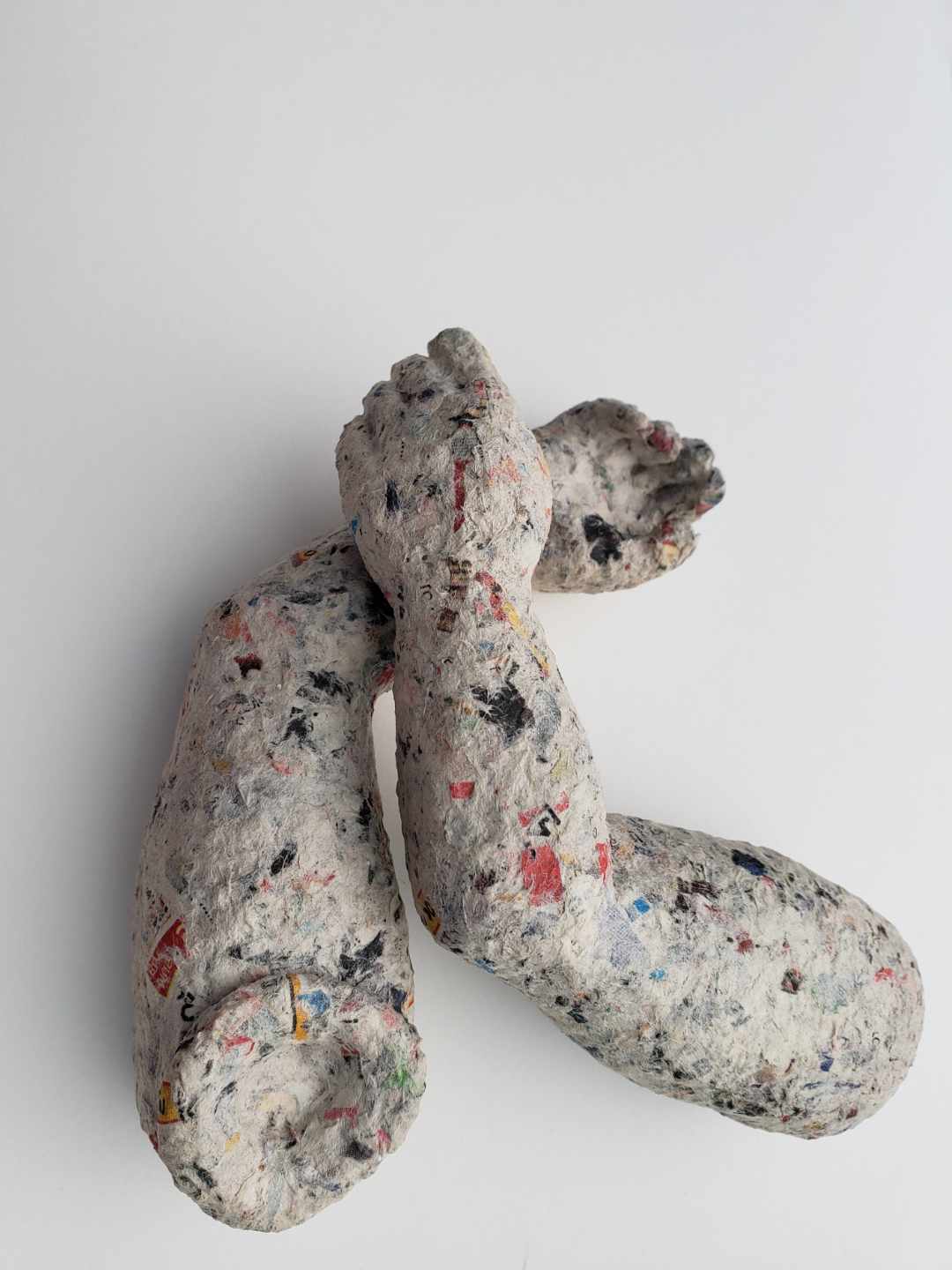Dolls and doll parts made from single use packaging. Plastic bags, circulars, polystyrene.