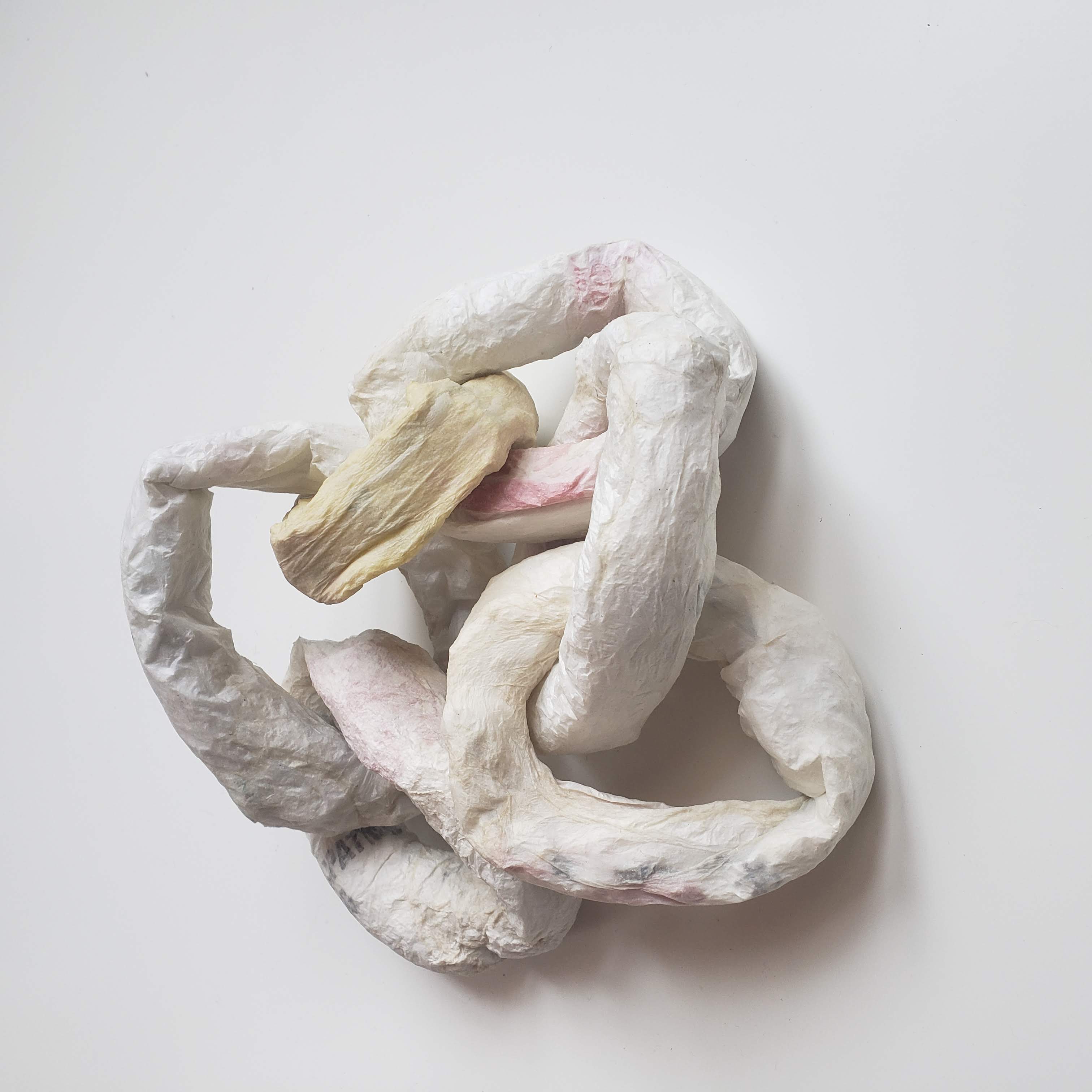 Unique chain links made from handmade paper and upcycled armatures.